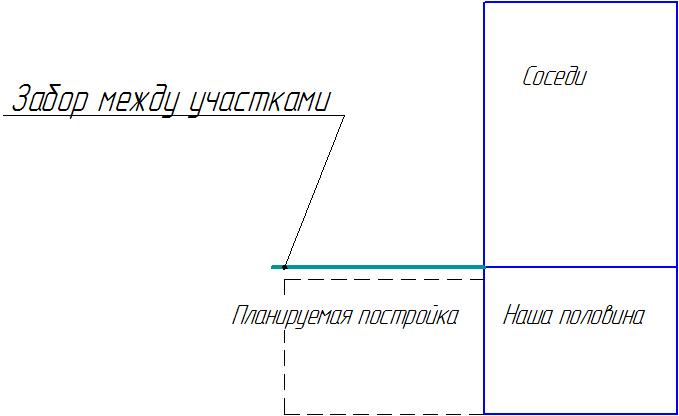 Здравствуйте! Дом деревянный, мы проживаем в половине этого дома, могу ли я пристоить пристройку(как показано на рисунке "Планируемая пристройка")по этой границе, просто слышал про закон, что надо строить не менее 3х метров от забора, и не знаю относится ли это к моему случаю, земля и половина дома в собственности.