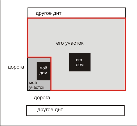 Я член днт (- это бывшие базы отдыха - причем земля не в собственности, а в аренде на 49 лет). Мой участок первый от дороги, затем(там был пожар и сгорело несколько домов) - построили два дома(два хозяина) а территорию остальных сгоревших домов огородили метал. забором высотой 2 метра. причем огородили так, что у меня ставни не открываются даже. забор проходит в 40 см от моего дома. да, когда мы покупали дачу забор был - но он был высотой метр из деревянных реек.